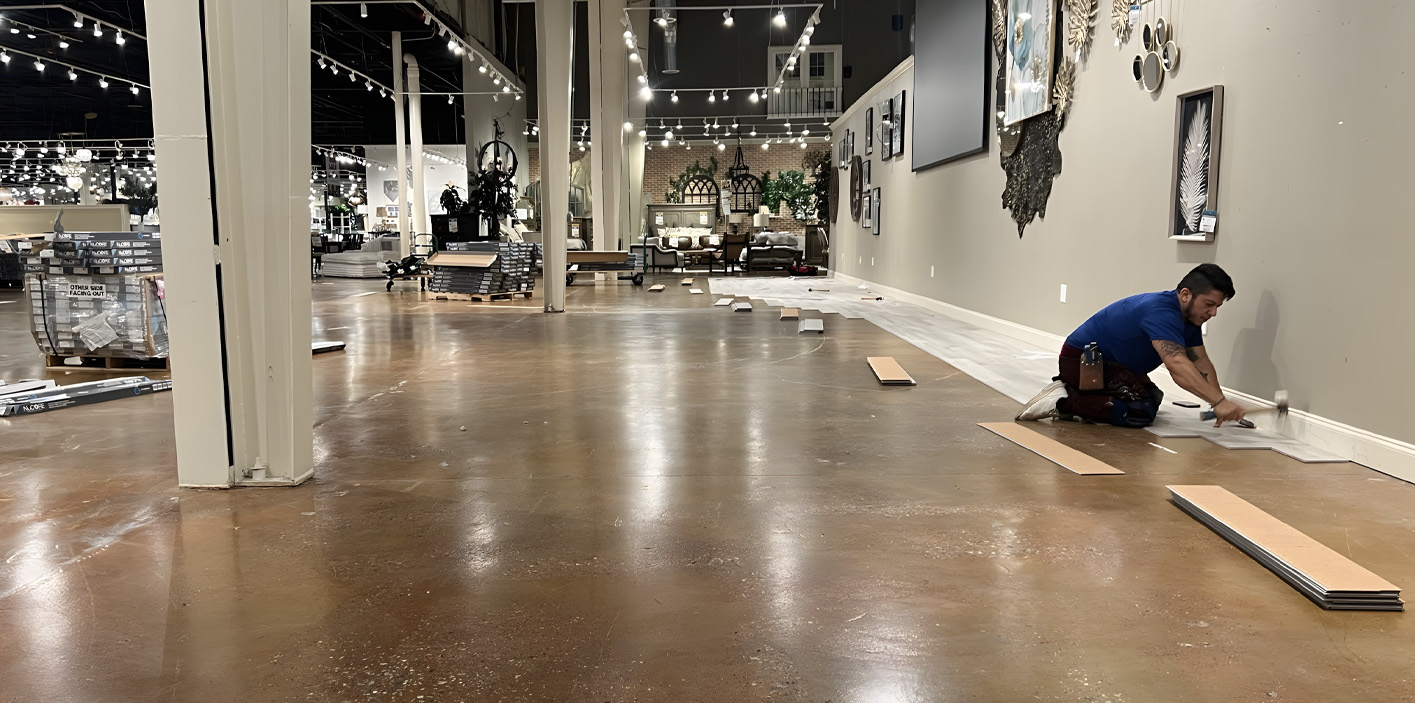 We can install floating floors, glue-down floors, and more. We also install molding, casings, baseboards, and all the necessary supporting systems. We can also help remove and dispose of the old flooring, prep the subfloor, level the floor if needed, and much more.