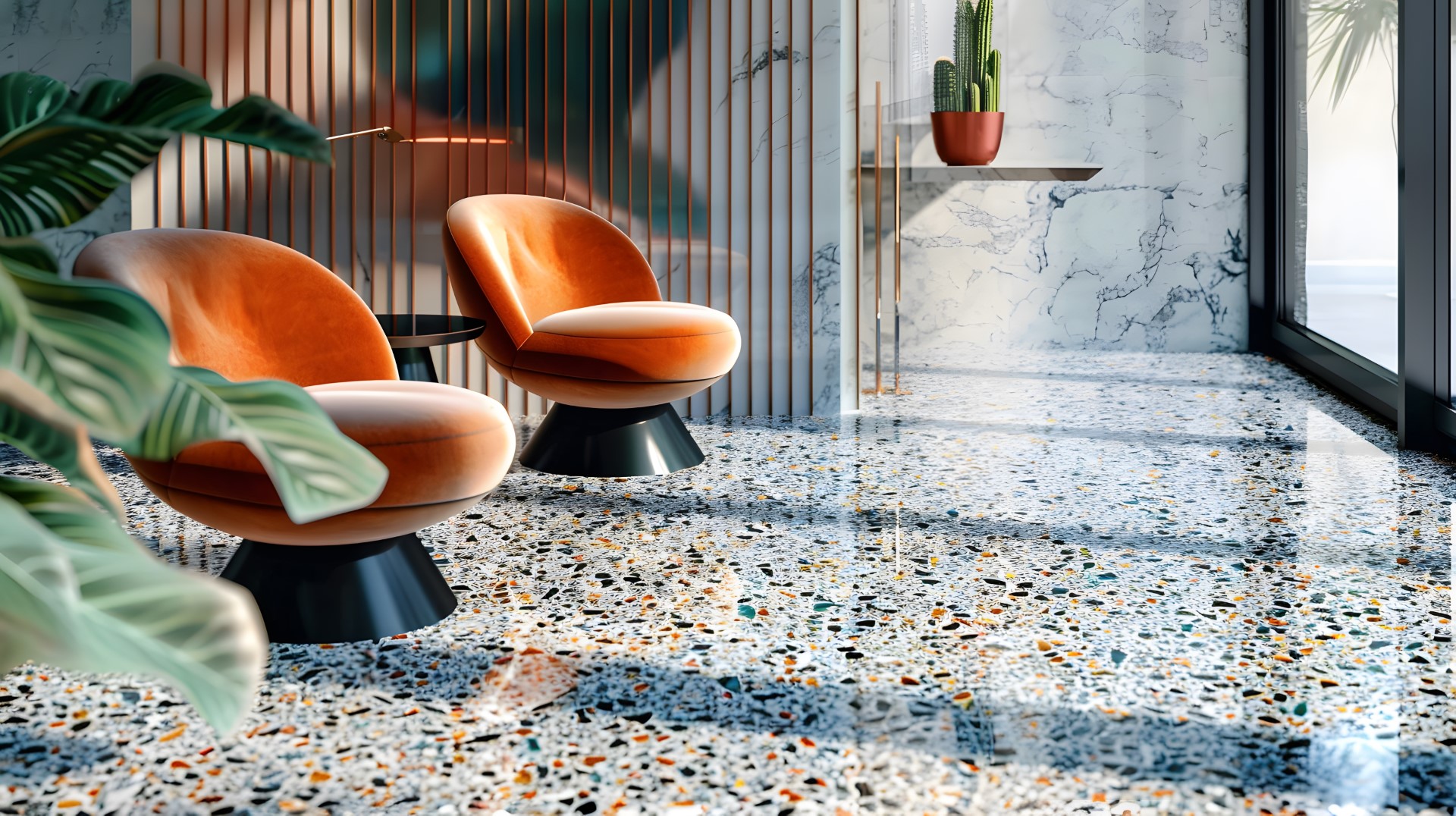 Terrazzo, a composite material, consists of fragments of marble, granite, quartz, glass, shell, or other substances. A cement or epoxy matrix holds these fragments together. Its versatility in design and application makes it an elegant and long-lasting choice for a diverse array of architectural and interior projects.